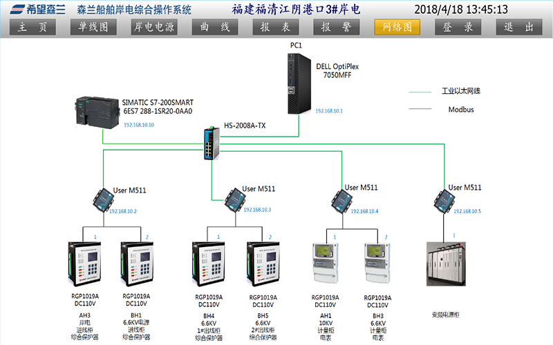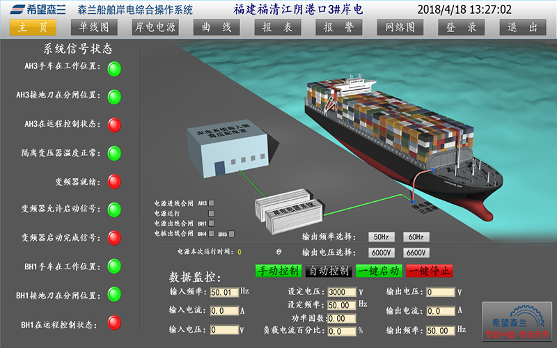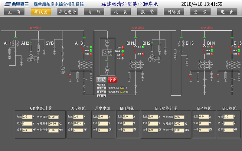 電氣主接線(xiàn)圖:以移屏和分幅顯示方式顯示岸電系統電氣主接線(xiàn)圖,并表示出運行狀態(tài)。測量參數:P、Q、COSφ、V、A、F。以移屏和分幅顯示方式顯示岸電電源的直流系統、站用電接線(xiàn)圖。運行人員或工程師以在線(xiàn)鍵盤(pán)輸入的交互方式可編輯各設備的運行、測試、接地、鎖定等工況報告,對這些報告可以進(jìn)行修改、檢索、顯示、打印。