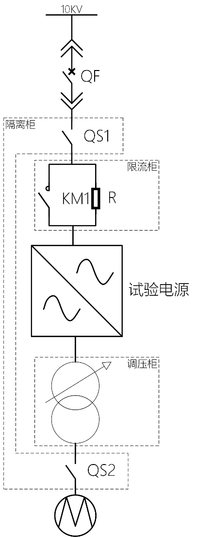 1)將高壓變頻試驗電源串聯(lián)在用戶(hù)現場(chǎng)的10KV與高壓電機之間即可。試驗電源的所有部件采用內部連線(xiàn),用戶(hù)只須連接380V/6KV/10KV輸入、高壓輸出、AC220V控制電源和控制信號線(xiàn)即可,方便快捷,操作簡(jiǎn)單;