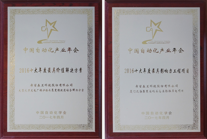 中國自動(dòng)化領(lǐng)域年度獎項評選現場(chǎng),希望森蘭科技股份有限公司榮獲“2016中國自動(dòng)化領(lǐng)域十大年度企業(yè)”,公司“大型火力發(fā)電廠(chǎng)鍋爐給水泵變頻改造綜合解決方案”被評為“2016十大年度最具價(jià)值解決方案”,此外,“廈門(mén)遠海集裝箱碼頭高壓船舶岸電項目”獲得“2016十大年度最具影響力工程項目”三項重要大獎。