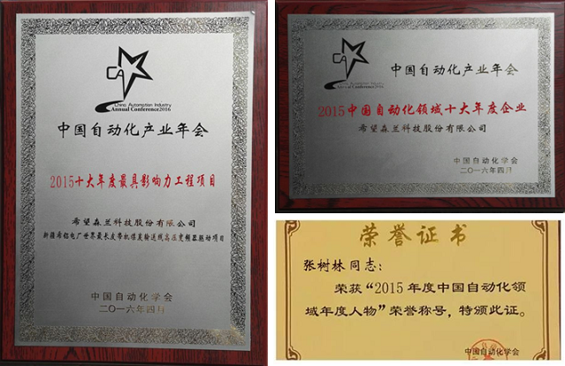 在2015中國自動(dòng)化領(lǐng)域年度獎項評選現場(chǎng),希望森蘭科技股份有限公司獲得“2015中國自動(dòng)化領(lǐng)域十大年度企業(yè)”,公司副總經(jīng)理張樹(shù)林先生榮獲“2015中國自動(dòng)化領(lǐng)域年度人物”,此外,希望森蘭的“新疆希鋁電廠(chǎng)世界最長(cháng)皮帶機煤炭輸送線(xiàn)高壓變頻器驅動(dòng)項目”獲得“2015中國自動(dòng)化領(lǐng)域十大年度最具影響力工程項目” 三項重要大獎。